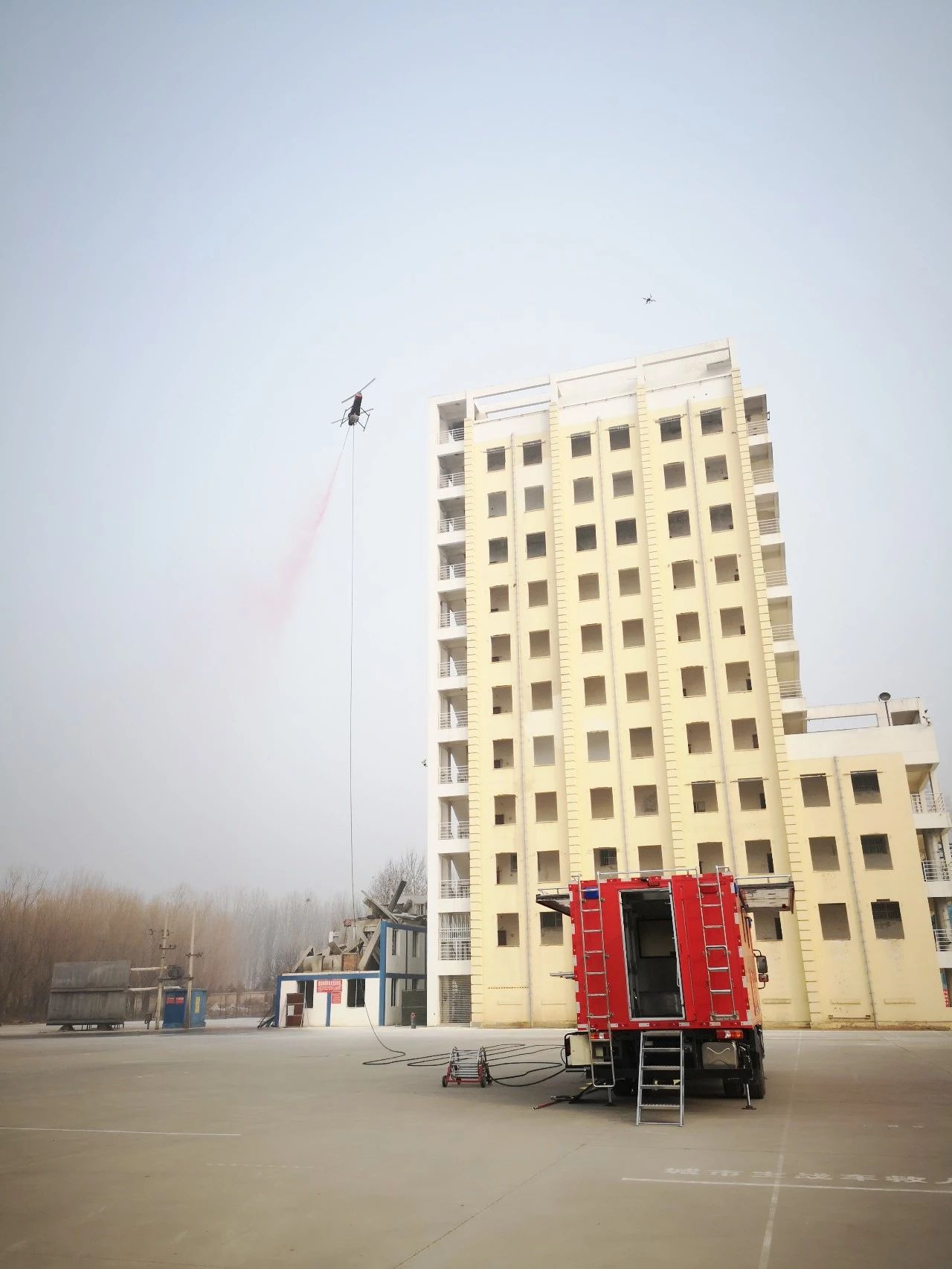 2019年2月22日上午,郑州市消防救援支队参谋长李隆带领支队相关技术人员到河南省消防救援训练基地对猎鹰100型高层建筑无人机灭火装备进行观摩指导。